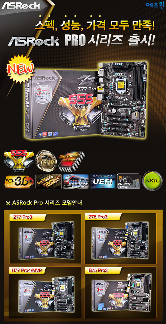 ASRock 메인보드의 국내 유통사 에즈윈에서는 인텔 7시리즈 신형 칩셋을 탑재한 'ASRock PRO'