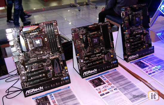 특히 최고 스펙의 X79 익스트림11과 X79 챔피온 메인보드 등 곧 출시될 하이엔드 제품이 전시돼 눈길을 끌었다.