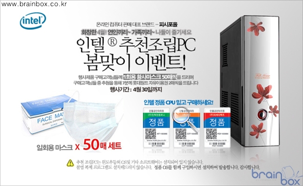 온, 오프라인 쇼핑몰 피시포올에서 인텔 정품QR 코드를 부착되어 판매하는 추천조립PC 봄맞이 이벤트를 진