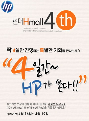 그것은 바로 현대홈쇼핑에서 4월 16일부터 4월 19일까지 4일간 진행되는 HP 특가전이다.