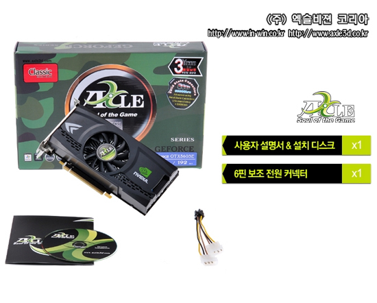 엔비디아의 GTX560 칩셋의 'AXLE GTX560 SE 밀리터리 D5 1GB' 그래픽카드를 출시했다.