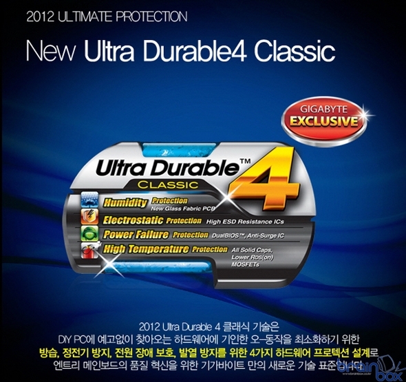 마지막으로, 언제나 안정성을 우선으로 생각하는 기가바이트 메인보드답게 방습, 정전기 방지, 전원장애 보호, 발열 방지를 위한 하드웨어 프로텍션 설계인 Ultra Durable4 Classic 기술도 기본 적용되어 오랜시간 시스템을 사용하여도 쾌적한 컴퓨팅 환경을 제공한다.