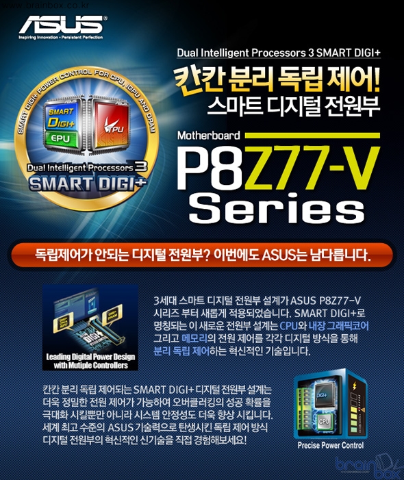 기존의 단순 디지털 전원부가 1세대 , SW방식으로 제어되는 2세대 디지털 전원부에 머물러 있는 다른 주요 경쟁사와 다르게 HW 방식으로 칸칸 분리 독립 제어되는 디지털 전원부를 채용한 3세대 스마트 디지털 전원 부 기술이 가장 큰 특징이다.