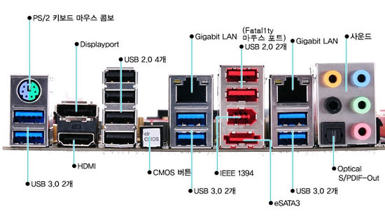 6개의 SATA3 커넥터와 4개의 SATA2 커넥터, 8개의 USB 3.0 포트와 10개의 USB 2.0 포트, IEEE 1394 포트를 장착했다. 백패널에 별도로 달린 Fatal1ty 마우스 포트는 미세한 마우스 감도까지 조절한다.
