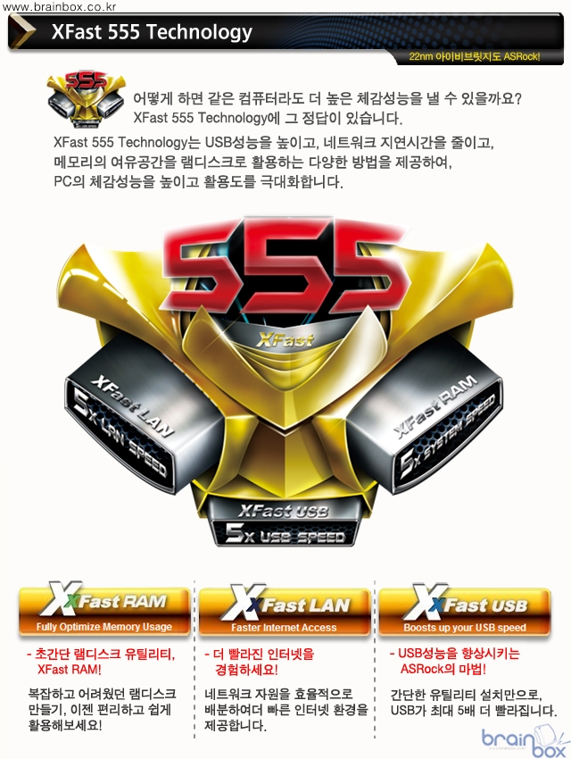![]() ASRock 메인보드의 국내공인 1호 대리점인 ㈜에즈윈(대표 박노선)에서는 LGA1155 소켓의 아이비브릿지와 샌디브릿지를 완벽히 지원하는 H77 메인보드, [ASRock H77M]을 출시했다. 인텔 H67 mATX 메인보드 중 가장 많은 사랑을 받았던 ASRock H67M을 성공적으로 업그레이드 한 [ASRock H77M]은, 전원공급 상황에 따라 유연한 전력공급을 통해 효율 및 안정성을 향상시킨 Digi Power 기술이 적용된 4+2페이즈의 전원부와 반영구적인 수명을 자랑하는 100% 솔리드 캐패시터, DDR3 1600MHz를 지원하는 2개의 메모리소켓, 차세대 인터페이스인 PCI-Express 3.0을 지원한다. 또, 네이티브 USB3.0을 지원하는 H77을 탑재하며, 기존 제품에서는 지원되지 않았던 전면 USB3.0 핀헤더를 새롭게 추가하여 케이스 전면에서도 USB3.0을 편리하게 사용할 수 있도록 했다. ![]() [ASRock H77M]은 USB와 인터넷 성능개선 및 손쉬운 램디스크 제작툴을 제공하여 시스템 체감성능을 높이는 XFast 555 Technology와 UEFI상에서 인터넷만 연결되면 간단하게 바이오스를 업데이트 할 수 있는 Internet Flash를 포함하여 경쟁사에서는 찾아보기 어려운 다양하면서도 기발한 ASRock 만의 부가기능을 다수 제공하고 있다. ![]() ㈜에즈윈 마케팅 담당자는 "[ASRock H77M]은 H67시장에서 독보적인 인기를 얻고 있는 ASRock H67M을, 강화된 기능과 디자인 개선 등 성공적인 업그레이드로 탄생한 ASRock의 보급형 대표제품" 이라며, "경쟁사와 차별화된 다양한 부가기능과 뛰어난 가격대 성능비를 제공하는 [ASRock H77M]에 ASRock H67M보다 더 많은 관심과 사랑을 부탁드린다." 고 밝혔다. [ASRock H77M]은 국내 공인1호대리점 ㈜에즈윈을 통해 3년간의 무상보증 서비스가 지원되며, 제품에 대한 자세한 문의는 ㈜에즈윈 영업부 (02-701-6350)을 통해 가능하다. |