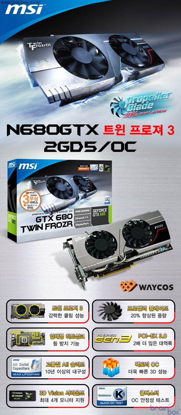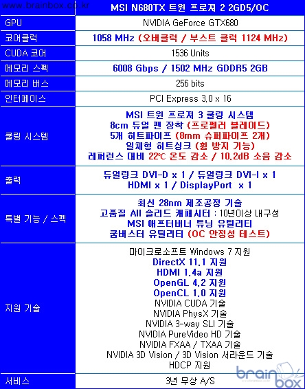 MSI N680GTX 트윈 프로져 3 2GD5/OC 제품은 최신 28nm 미세 공정의 NVIDIA ‘케플러’ 아키텍처 기반으로 1