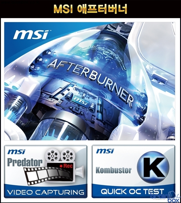 아울러 애프터버너 최신 버전에서는 자신의 플레이하는 게임 화면을 실시간으로 캡쳐하거나 동영상 캡쳐도 할 수 있는 “프레데터” 기능이 추가되었으며, 애프터버너로 오버클럭 후 안정적으로 동작하는 지 직접 확인 할 수 있는 “쿰버스터” 유틸리티도 함께 제공되어 최적의 오버클럭 환경을 갖출 수 있도록 지원하고 있다.