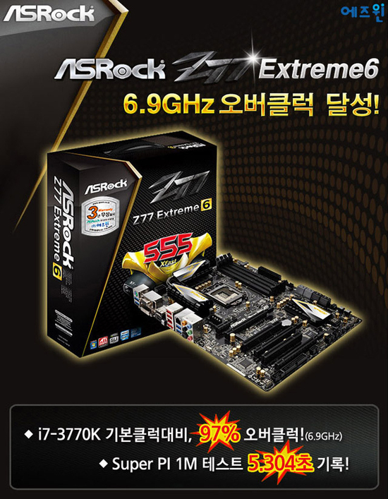 ASRock Z77 Extreme6와 아이비브릿지 i7-3770K로 6.9Ghz의 놀라운 오버클럭 기록을