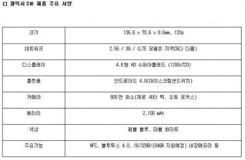 드디어 발표, 갤럭시 S3 제품 주요 사양