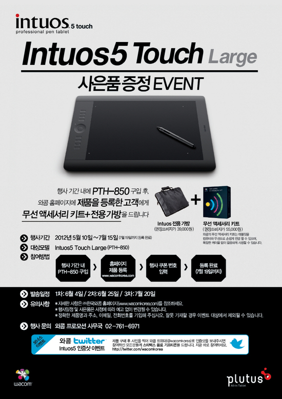 한편 와콤은 '와콤 트위터 Intuos5 인증샷 이벤트'도 진행한다.