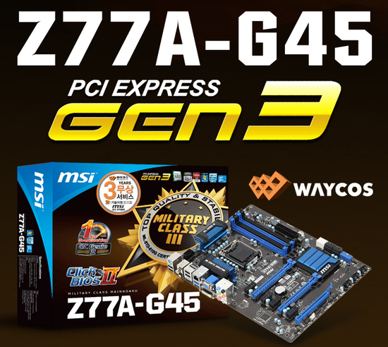 웨이코스(대표 고민종)는 인텔 최신형 Z77 칩셋을 장착한 메인보드 'MSI Z77A-G45