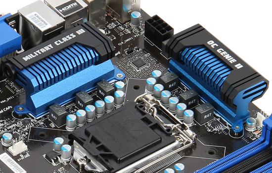 MSI Z77A-G45 Gen3는 아이비브릿지와 샌디브릿지를 모두 쓸 수 있는 제품으로 우수한 품질을 제공하기 위해 밀리터리 클래스 3 디자인을 적용했다. 제품에 장착된 SFC (슈퍼 페라이트 초크) 는 기존 초크보다 30% 향상된 전류 저장능력 및 오버클러킹 환경에서도 안정적인 전원을 공급할 수 있다.