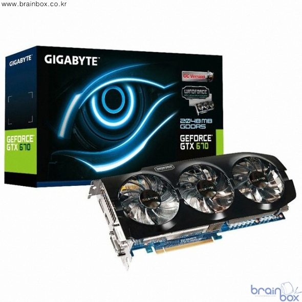 새롭게 출시되는 GIGABYTE GeForce® GTX670 제품은 GTX680 레퍼런스 제품에 버금가는 성능을 보여준다. GIGABYTE GeForce® GTX680 과 같은 PCB 기판을 사용하여 강화된 전원부(5+1 power phase)는 물론 효율적인 전력공급을 위해 8pin+6pin의 보조 전원부를 구성하였고, 980MHz의 core base 클럭(Boost : 1,058MHz) 및 1,344개의 CUDA 프로세서를 탑재 하였다. 또한 이 제품에는 GeForce® GTX680을 통해 새롭게 선보였던 GPU Boost, Adaptive V-sync, NVIDIA 3D surround 등과 같은 최신 기술도 동일하게 적용되었다. GeForce® GTX680 제품이 갖고 있는 장점을 모두 충족하면서 그에 버금가는 컴퓨팅 성능을 가진 GIGABYTE GeForce® GTX670 제품은 50만원대의 합리적인 가격으로 출시 될 예정이며 이는 GeForce® GTX680 제품의 구입에 부담을 가졌던 소비자들께 반가운 소식으로 다가 설 것으로 예상된다.
