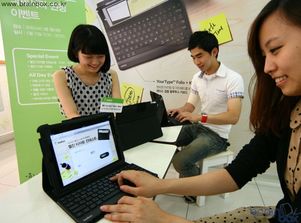 벨킨 YourType™ 폴리오 + 키보드로 벨킨 타자왕에 도전하세요! 5.13(일) 명동 프리스비 매장에서 뉴 아이패드 액세서리 런칭 기념 소비자 이벤트 등 다양한 행사 개최 IT 주변기기 전문기업 한국벨킨(대표: 김대원 지사장)은 뉴 아이패드 액세서리 런칭을 기념하여 5월 13일 (일) 오전 11시 30분부터 8시까지 명동 프리스비 매장 2층에서 소비자들을 대상으로 다양한 이벤트 행사를 진행했습니다. ? 오늘 행사에서는 벨킨 뉴 아이패드 전용 YourType™ 폴리오 + 키보드로 벨킨 타자왕에 도전할 수 있는 소비자 대상 컨테스트를 진행했습니다. 뉴 아이패드와 벨킨 YourType™ 폴리오 + 키보드가 설치된 이벤트 존에서 제시된 30개의 단어를 가장 빠르게 타이핑하는 사람이 우승하는 방식으로, 타이핑 기록과 순위는 설치된 스크린을 통해 실시간으로 표시됐습니다. 1등에게는 뉴 아이패드가, 2,3등에게는 벨킨 제품이 상품으로 주어졌습니다. ? 첫번째 메인 이벤트인 ‘벨킨 타자왕’ 선발대회가 종료된 후, 저녁 6시부터 7시까지 벨킨의 다양한 제품들이 상품으로 걸린 즉석 룰렛 이벤트가 진행됐습니다. ? 이 외에 벨킨 제품 구매 대상 경품 이벤트, YourType™ 폴리오 + 키보드 리뷰 이벤트, 벨킨 제품 짝맞추기 이벤트 등이 11시 30분터 8시까지 상시로 운영되었으며, 벨킨 라이프스타일 부스에서 스타일리시&스마트한 벨킨 제품을 직접 체험했으며 및 아이폰 충전 서비스도 제공했습니다 |