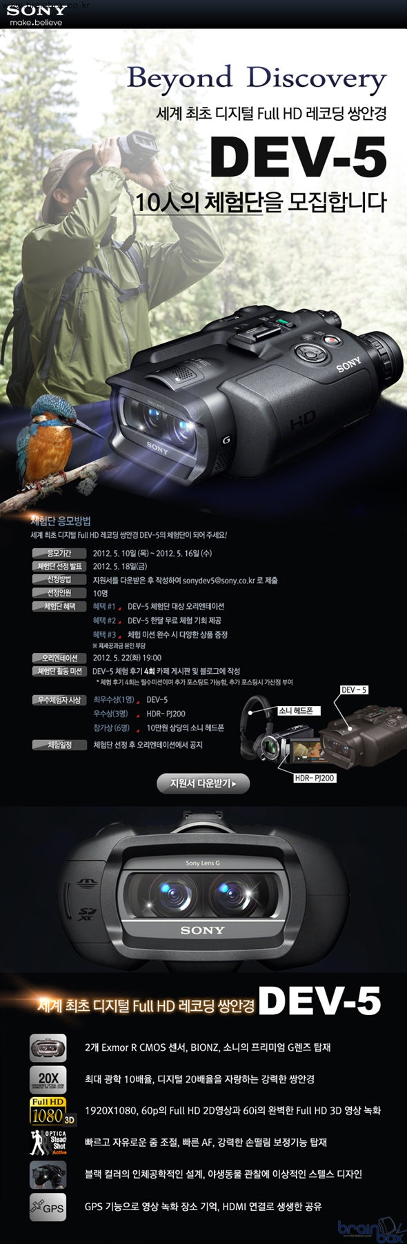 소니코리아(대표 이토키 기미히로)는 세계 최초 디지털 풀HD 레코딩 쌍안경 DEV-5 체험단을 모집한다고 밝