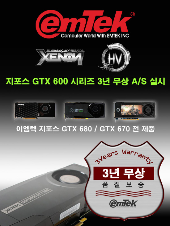 www.emtekinc.com)는 XENON, HV 브랜드 그래픽카드 일부 제품의 무상 보증 기간을