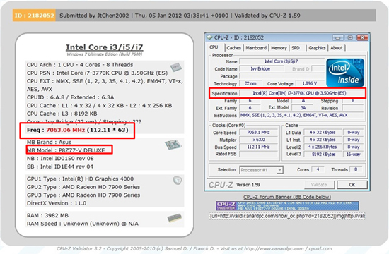 얼마전 ASUS 엔지니어에 의해 진행된 테스트에서 ASUS Z77 시리즈의 간판 모델인 P8Z77-V DELUXE는 액화 질소 냉각 쿨링 환경에서 CPU-Z 기준 7GHz (7063.03MHz)라는 오버클럭킹 기록을 수립하였다. 이는 정상 CPU 클럭인 3.5GHz의 2배에 해당하는 어마어마한 동작속도로, ASUS P8Z77-V DELUXE 마더보드의 오버클럭킹 성능과 안정성이 얼마나 뛰어난가를 잘 보여준다. 또한 게이밍 및 하드코어 전용 ROG Maximus V GENE 마더보드는 액화 질소 냉각 쿨링Aquamark3, PiFast, 3DMark®2001 SE, SuperPi와 SuperPi 32M 등 총 5개 부문에서 새로운 세계 신기록을 수립한 바 있다.