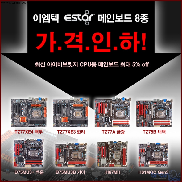 최신 아이비브릿지 CPU를 쓸 수 있는 이엠텍 ESTAR 메인보드를 조금 더 저렴한 가격에 만날 수 있게 되었다