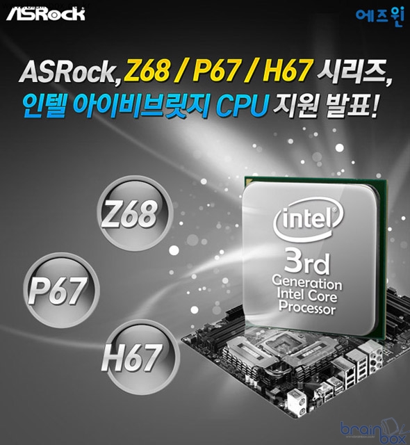 ASRock 메인보드의 국내공인 1호 대리점인 ㈜에즈윈(대표 박노선)에서는 ASRock과 함께, ASRock Z68 / P67 / H67 시리즈 메인보드의 인텔 최신 아이비브릿지 CPU의 지원소식을 전했다.