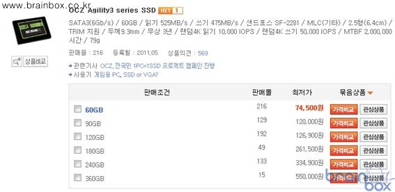- OCZ 어질리티3(Agility3), 다나와 SSD 순위 전체 1위