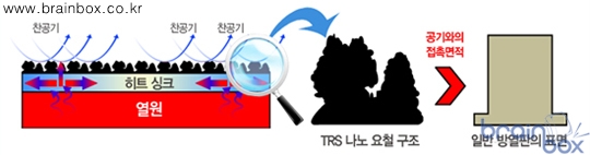 방열과 흡열, 열 처리 능력을 크게 향상 시키는 기술인 TRS는 신소재를 이용해 히트 싱크 표면에 극히 미세한 ‘나노 요철’을 만들어 공기와의 접촉 면적을 극대화 시킨다. 이렇게 극대화된 방열 면적을 통해 뛰어난 쿨링 성능을 내는 것이 TRS 기술의 핵심으로, TRS 기술에 사용된 신소재는 그 효과 이미 다양한 분야에서 입증 됐다. LED 램프, 디지털 TV, 태양 전지, 자동차 등, 다양한 전자/기계 장치에서 신소재가 적용되고 있으며, 보다 더 넓은 영역에서의 적용을 위해 지금도 연구 개발이 계속되고 있는 물질이다.
