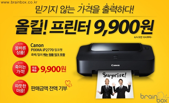 | - 500대 한정 캐논 PIXMA iP2770 잉크젯 프린터 9,900원에