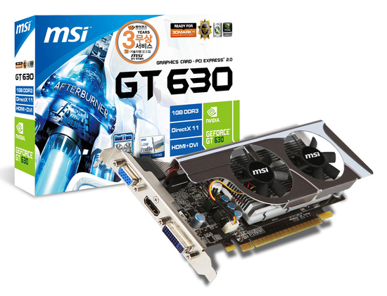 MSI 지포스 GT630 N630GT-MD1GD3 D3 1GB LP 미니 트윈 지포스 GT630 / 810MHz / GDDR3(DDR3) / 1333MHz / 1GB / 128-bit / PCI-Express 2.0 x16 / 최대 56W / 정격파워 300W 이상/ |