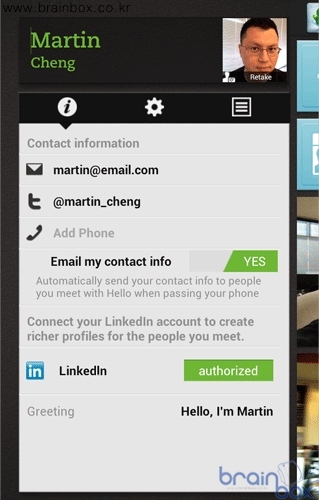 에버노트 헬로우는 에버노트가 지난 연말 선보인 자매 앱으로, 사람과 만남에 대한 모든 것을 기록할 수 있도록 도와주는 스마트 인맥관리용 애플리케이션이다. 새로운 사람을 만났을 때 실제 우리의 두뇌가 연관 정보를 구축하고 기억하는 방법과 동일하게 설계된 것이 그 특징. 만난 사람의 인상 착의는 물론, 만났던 시간, 장소 및 상황을 모두 함께 정리할 수 있어, 단순히 이름과 연락처 등의 정보만 제공하는 명함이나 주소록의 한계를 극복, 보다 효율적인 인맥 관리를 돕는다. <사진 설명: (좌) 스마트 인맥관리 앱 ‘에버노트 헬로우’ 화면, (우) 링크드인 기능이 통합된 안드로이드용 ‘에버노트 헬로우’ > 예를 들어, 새로운 사람을 만나게 되면, 에버노트 헬로우를 실행하고 직접 프로필을 입력하거나 혹은 주소록에서 정보를 불러와 새로운 ‘만남’(Encounter)를 생성한다. 이 ‘만남’ 정보에는 연락처와 사진 외에도 만났던 장소, 함께 만났던 사람의 프로필을 볼 수 있는 링크, 관련된 내용이 들어 있는 에버노트 문서, 추가 스냅샷 등 만남에 대한 모든 정보가 유기적으로 보여진다. 특히 이번에 새롭게 출시된 안드로이드용 버전에는 링크드인(LinkedIn) 기능이 통합되어, 링크드인 연결을 설정하면, 메일 주소만 입력해 자동으로 링크드인에 저장된 프로필 정보를 에버노트 헬로우에 불러올 수 있다.