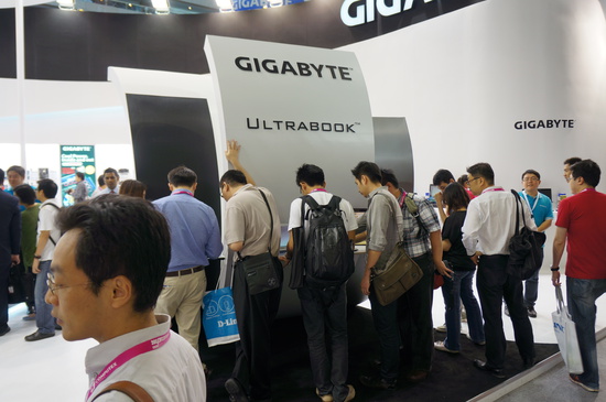 많은 업체가 다양한 제품들을 선보이고 있었고 볼거리도 상당히 많았는데, 필자는 그 중 TWTC 홀에서 유일하게 노트북을 전시하고 있는 기가바이트 부스를 찾아가 보았다. (대부분의 노트북 업체들은 난강홀에 위치해 있다.)