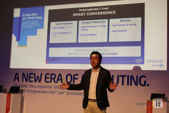 인텔 코어 프로세서 제품의 성능을 시연하며, 울트라북의 새로운 특성을 강조했다.