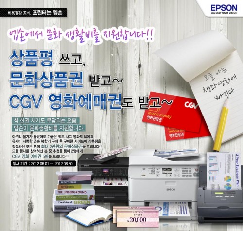 서치헌 이사는 “이번 이벤트는 지속되는 경기 침체에 영화 관람, 독서 등의 문화생활 기회가 줄어든 소비자들을 위해 기획했다”면서 “엡손 제품들의 비용절감 효과를 알리기 위해 소비자들에게 혜택을 줄 수 있는 다양한 행사를 준비하고 있다”고 말했다.
