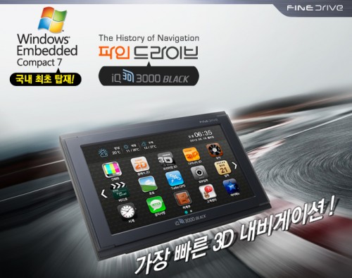 파인디지털(대표 김용훈 www.fine-drive.com)은 국내 최초로 마이크로소프트의 최신 운영체제인 ‘윈도우 임베디드 컴팩트 7(Windows Embedded Compact 7)’을 탑재하고 프로세서 성능을 강화한 3D 내비게이션 ‘파인드라이브 iQ 3D 3000 BLACK’을 출시한다고 금일 밝혔다.