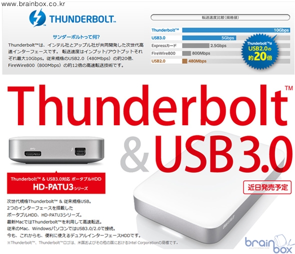 버팔로 Korea는 썬더볼트 인터페이스 제품인 버팔로 썬더볼트 외장하드를 국내 출시 한다고 밝혔으며, 오앤웍스에서는 애플 PC 사용 유저를 위한 버팔로 썬더볼트 외장하드 500GB/1TB에 대해 국내 애플 매니아 층을 대상으로 사전 공동구매 형식을 통한 프로모션 공급을 추진 하겠다고 밝혔다. 자세한 사항은 오앤웍스 홈페이지/카페를 통해 추후 공지 후, 진행 한다고 밝혔다. 금번 새롭게 출시될 버팔로 썬더볼트 외장하드는 USB2.0/USB3.0 지원은 물론 썬더볼트 인터페이스까지 지원하며 500GB/1TB 두 종류의 제품을 출시 한다고 밝혔다.
