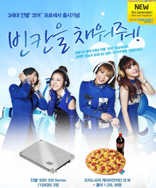 3세대 인텔 코어 프로세서에 대한 간단한 상식을 알아보는 이번 퀴즈 이벤트에서는, 2명에게 최고의 궁합을 자랑하는 SATA3 6Gbps 규격 인텔 SSD 330 120GB 모델을 두 명에게 제공한다. 또한 도미노피자 캐리비안치킨 씬 M 콜라 1.25L 콤보세트를 40명에게 제공해 한여름을 더욱 상쾌하게 만들어줄 예정이다.