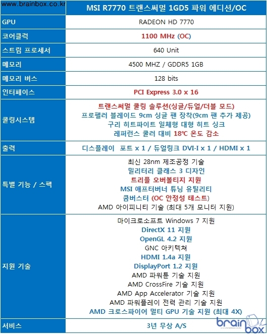 MSI R7770 트랜스써멀 1GD5 파워 에디션/OC 공식 스펙