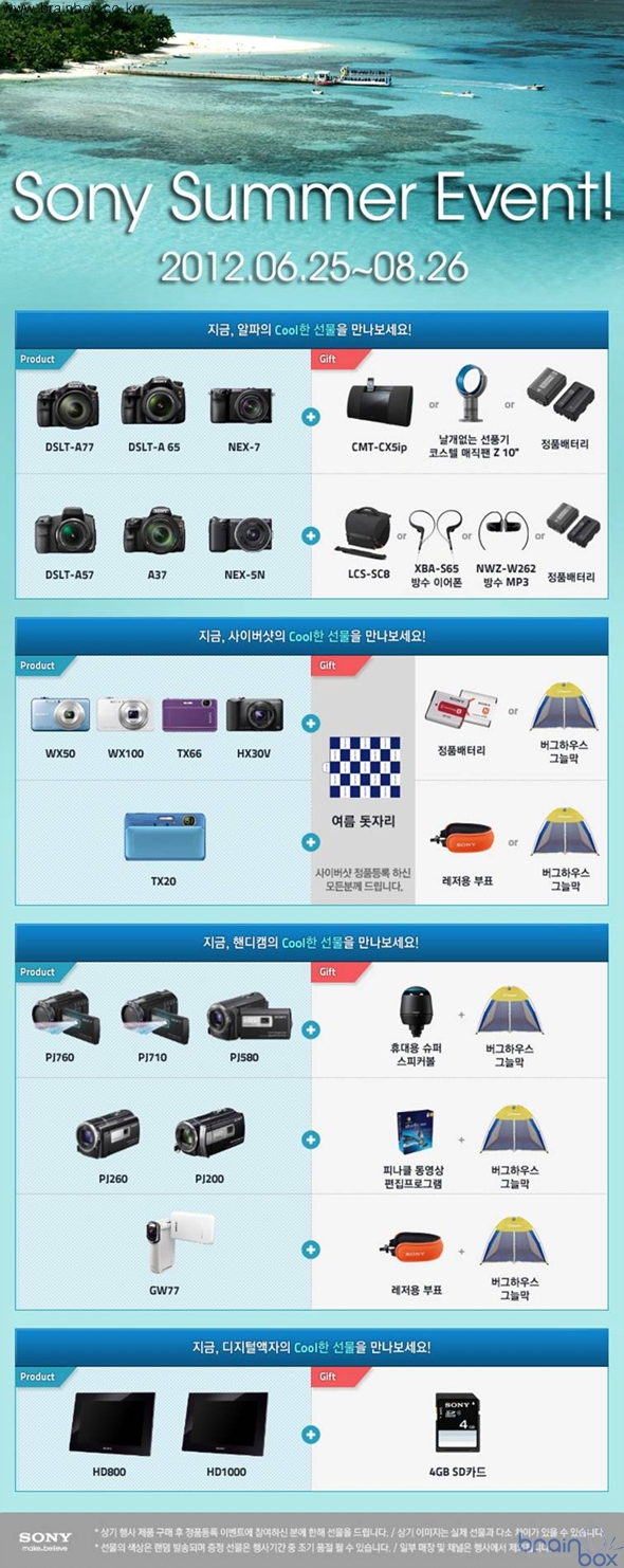 | - 6월 25일부터 8월 26일까지 알파 DSLT, NEX, 사이버샷, 핸디캠