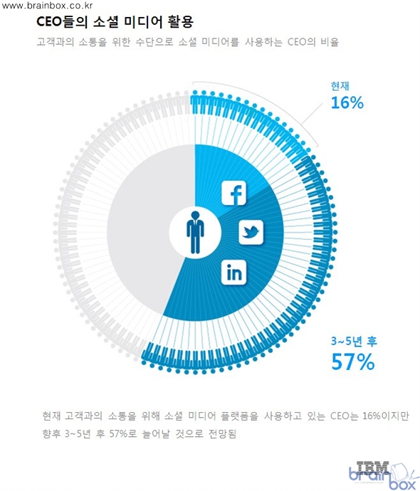 전세계 CEO 중 고객과의 소통 수단으로 소셜 미디어를 사용하고 있는 비율은 전체의 16%인 것으로 나타났으