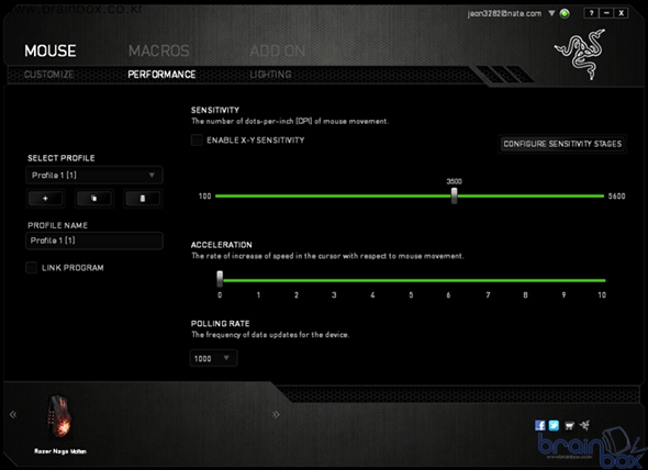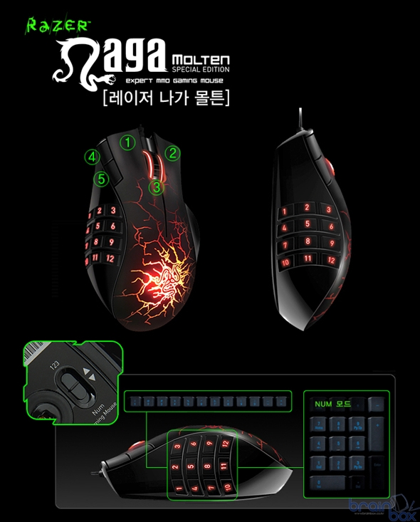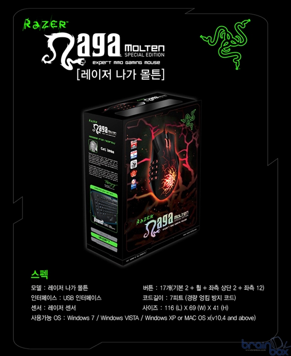 | - 인체공학적 디자인 - 5600dpi 3.5G 레이저 센서 탑재 - 세계 최고의 반응속도, 1000Hz 울트라폴링 / 1ms - MMOR에 최적화된 17개 버튼 - MMO 고유 애드온 소프트웨어 제공 - 게이밍 클라우드 서비스 Synapse 2.0 최상급 하이엔드 게이밍 기기 제조업체인 Razer의 한국 공식파트너 ㈜웨이코스(대표:고민종)는 프로 게이머들이 선호하는 Razer Naga Molten 제품을 수입 유통하고 있다. Razer 게이밍 기어를 대표하는 Naga 시리즈 중 Naga Molten은 붉은 마그마의 기운을 풍기는 디자인을 지녔다. ![]() Razer Naga 게이밍 마우스는 출시 후 MMORPG를 즐기는 전세계 게이머들이 애용하는 제품으로 실제 게임 시 최적의 컨트롤을 제공하며, 게이머들의 편의와 빠른 컨트롤을 위해 우측 12개 사이드 버튼을 갖추고 있으며 상판의 5개 버튼을 포함하여 총 17개 버튼을 통해 최상의 매크로 기능을 제공한다. ![]() Razer Naga Molten 은 게이머가 장시간 사용시에도 가장 편안한 그립감으로 게임을 즐길 수 있도록 인체공학적 디자인을 채택하였다. 최적의 감도와 정교한 컨트롤을 제공하기 위해 일반 광센서가 아닌 5600 dpi 3.5G 레이져 센서를 탑재하고 있으며, 일반 USB 마우스보다 8배 빠른 1000Hz Ultrapolling 데이터 전송속도를 지원하며 세계 최고 속도인 1/1000초(1ms)의 반응속도를 제공한다. ![]() Razer Naga Molten 은 Naga 전용 드라이버를 통해 dpi와 폴링 레이트 설정이 가능하며 게이머의 특성에 따라 X/Y 값을 개별적으로 적용할 수 있다. dpi 설정은 100 ~ 5600 dpi 사이에서 원하는 값으로 자유롭게 세팅이 가능하며, 폴링 레이트는 125 / 500 / 1000 polling 으로 설정이 가능하다. 또한 설정한 값을 5단계로 프로파일화 하여 게임 환경 및 게이머의 편의에 따라서 손쉽게 dpi 변경이 가능하다. ![]() MMORPG 게임에 최적화된 Razer Naga Molten 은 상판의 5개 버튼과 사이트 패널의 12개 버튼을 포함한 총 17개 버튼을 제공하며 각 버튼마다 매크로 기능을 설정할 수 있어 최상의 MMO 게임 플레이를 즐길 수 있다. 또한 별도의 드라이브 설치 없이 바닥에 장착되어 있는 스위치 변경으로 기본 숫자키/NUM 패드키 설정을 조정할 수 있다. ![]() Razer Naga 제품에는 전용 드라이버와 ADD ON 커스텀 인터페이스가 제공되어 게임에 따라 세팅 값을 달리하여 최적의 게이밍 환경을 구성할 수 있다. Razer Naga 2012 Edition에 제공되는 ‘Razer Synapse 2.0’ 드라이버는 클라우드 서비스를 활용하여 어느 장소나 어느 시스템에 관계없이 설정한 세팅 값을 그대로 사용할 수 있으며 dpi 조정, 프로필 저장, 매크로 설정 등 다양한 기능을 설정할 수 있는 기능을 제공한다. Razer 한국 공식파트너사인 ㈜웨이코스는 국내에 유통하는 Razer 제품에 대해 마우스는 2년 / 키보드 및 오디오 제품은 1년 무상 보증기간을 제공하며, 서비스 기간 내에는 1대1 새 제품으로 교체하는 프리미엄 서비스를 제공한다. 레이저 제품에 대한 보다 자세한 내용은 ㈜웨이코스 홈페이지를 참조하면 된다. ![]() |