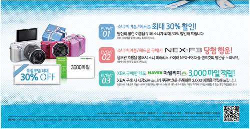 기간 내 행사 제품인 이어폰, 헤드폰 17종 제품 구매 고객에게는 제품별 최대 30%의 할인 혜택이 주어진다. 뿐만 아니라 행사 모델 구입 후, 매장에 비치된 응모함에 응모권을 작성해 넣으면 추첨을 통해 소니 알파 NEX-F3(더블렌즈킷)를 총 31명에게 선사한다. 온라인 구매 고객은 자동으로 참여 된다.