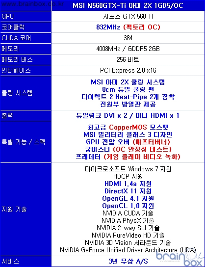 MSI N560GTX-Ti 아머 2X 1GD5/OC 공식 스펙