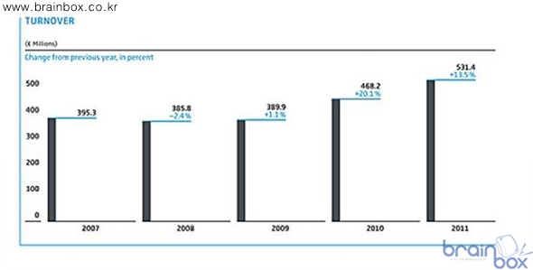 - 매출 5억3천1백4십만 유로로 전년 대비 13.5% 증가