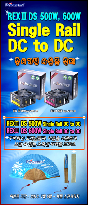 국내유일 파워서플라이 제조기업 파워렉스주식회사 ( 대표 : 곽승철 www.powerex.co.kr ) 에서 REXⅢ DS 500W, 600W Single Rail DC to DC 출시와 함께 오죽선 부채를 사은품으로드리는 행사를 갖습니다. 이번 출시 제품인 REXⅢ DS 500W, 600W Single Rail DC to DC는