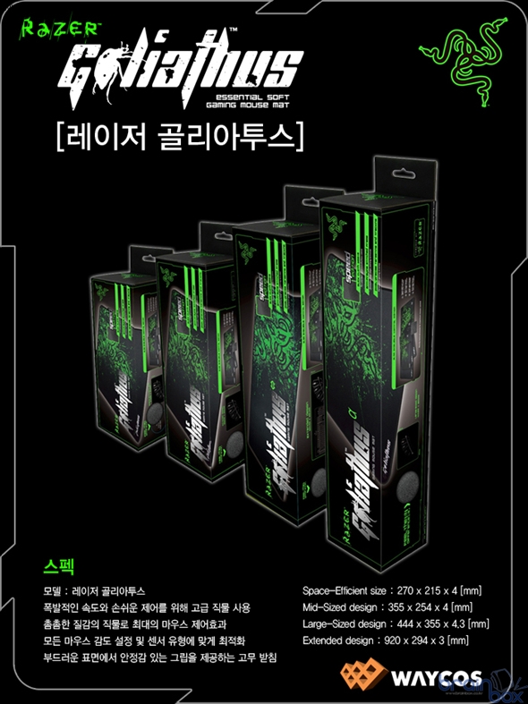 | - 게이밍에 최적화된 마우스 패드 - 컨트롤/스피드 기능별 전용 패드 - 사이즈별 4종 구성 최상급 하이엔드 게이밍 기어 제조업체인 Razer의 한국 공식파트너 ㈜웨이코스(대표:고민종)가, Razer의 게이밍 전용 마우스 패드인 ‘골리아투스’ 시리즈를 수입 유통한다. ![]() Razer 엔지니어들이 연구와 개발을 통해 출시된 골리아투스 마우스 패드 제품들은 세계 최고의 프로게이머들이 사용하며 품질을 검증한 제품들이다. 프로게이머들의 테스트를 통해 확인된 피드백들을 반영하여 패드면을 코팅하지 않은 소프트 패드를 채택하여 정확한 컨트롤과 편안함 그리고 하드 패드의 빠른 스피드와 반응속도의 특장점을 적용하여 게이밍에 최적화 시킨 제품이다. ![]() Razer 골리아투스 게이밍 마우스 패드 시리즈는 다양한 게임을 즐기는 게이머의 취향과 게임 특성에 따라 선택하여 사용 할 수 있도록 컨트롤과 스피드 2 종류의 패드로 나누어져 있다. 골리아투스 컨트롤 패드는 최적의 컨트롤과 픽셀 수준의 정확한 스캔 기능을 제공한다. 마우스 표면을 조밀한 직조 방식의 패턴으로 구성하여 최적의 마찰을 통해 마우스의 슬라이딩이 부드럽고 일관되게 이루어져 센서 유형에 관계없이 미세한 움직임이 인식되도록 제어할 수 있다. 골리아투스 스피드 패드는 빠른 움직임과 정확한 컨트롤 기능을 제공한다. 내구성 있는 표면을 위해 고급 섬유 기술을 적용하여 간결하고 촘촘하게 짜여진 표면은 마우스 슬라이딩을 보다 빠르고 부드럽게 유지시켜 정확한 타켓팅이 가능하며 고/저감도 마우스 센서에 최적화 되어 있다. ![]() Razer 골리아투스 게이밍 마우스 패드 시리즈는 크기에 따라 4 종류로 구성되어 있다. 게이머의 환경에 따라 적합한 사이즈의 패드를 선택 할 수 있도록 공간 절약형 소형 사이즈와 일반적인 미들 사이즈, 라지 사이즈 그리고 데스크 패드 크기의 대형 사이즈로 구성되어 있다. 모든 Razer 골리아투스 게이밍 마우스 패드는 가장자리 부분을 고밀도 올 풀림 방지 봉제 처리를 하여 마우스 패드 품질을 향상 시켰으며 안정적인 그립을 제공하기 위해 격자무늬 패턴의 고무 바닥 층을 적용하였다. ![]() |