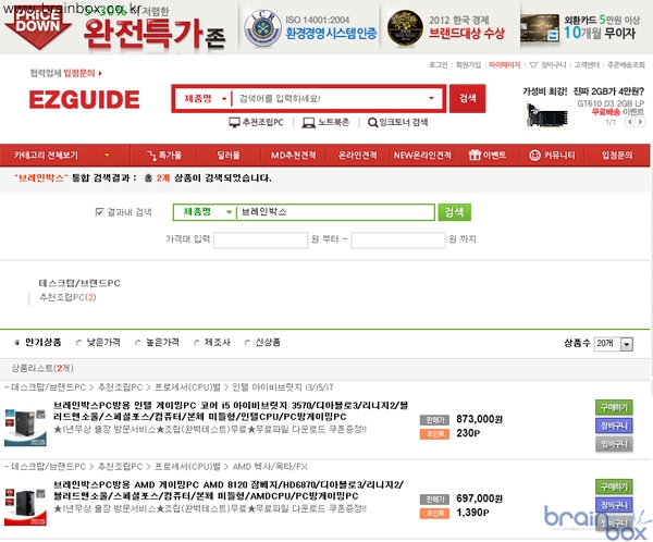 이지가이드 ((주)엘씨디존 대표 : 신국도)에서는 브레인박스에서 발표한 게이밍 PC 2종을 판매한다.