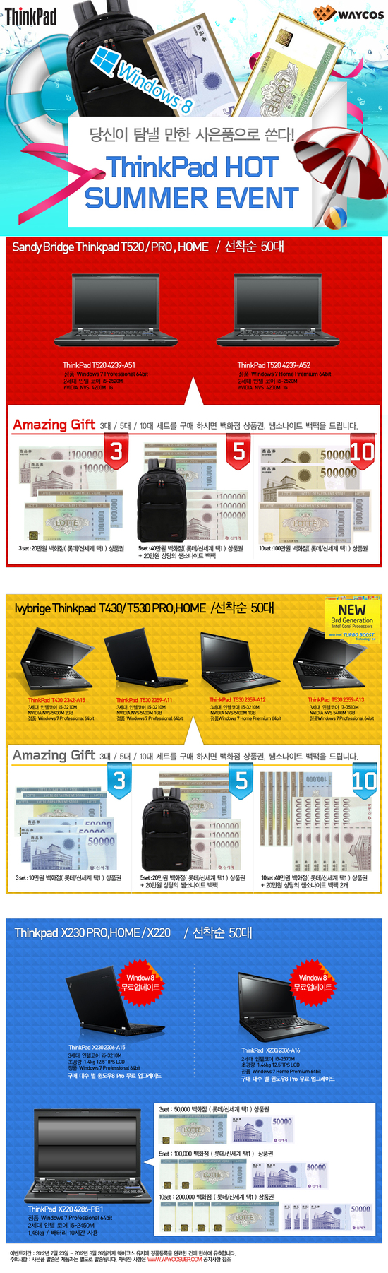 구매하는 고객에게 신세계, 롯데백화점 상품권 및 다양한 ThinkPad 액세서리, 윈도우8