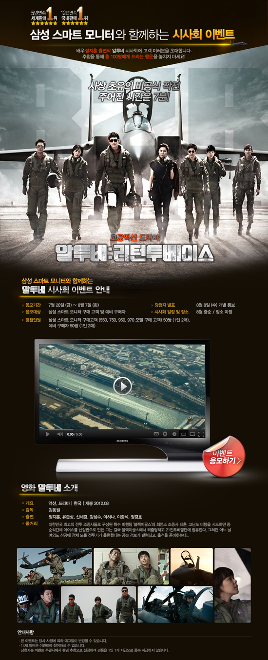 고객 50쌍(1인2매)을 초청한다. 당첨자는 8월 중순 영화 <알투비> 시사회에