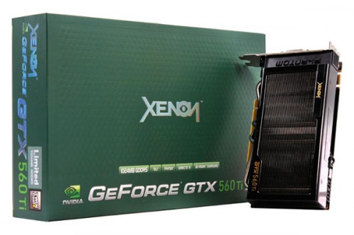 가격비교 사이트 인기순위 1위이자 국내에서 가장 많이 판매되고 있는 지포스 GTX 560 Ti 그래픽카드인 XENON GeForce GTX 560 Ti 트윈쿨+의 쿨러 변경 제품인 XENON GeForce GTX 560 Ti Limited는 외형이 매우 독특한 쿨러를 사용하고 있다.