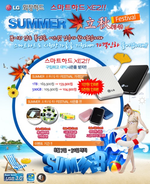 가림토(karimto_inc.blog.me)가 가을을 알리는 입추를 맞아 인기판매 외장하드인 LG전자 스마트하드 XE2!! 대상, ‘썸머 입추 페스티벌’을 펼친다고 밝혔다.