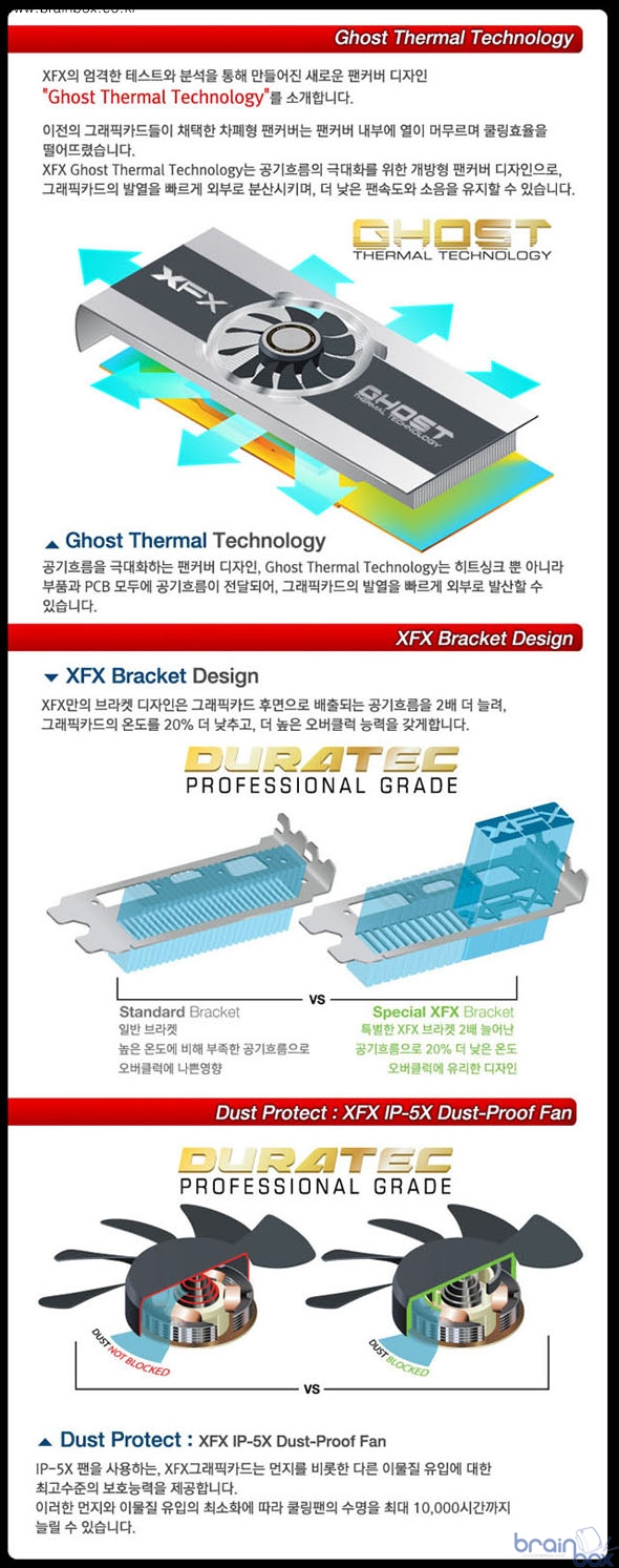 - XFX의 독창적인 개방형 팬커버 디자인, 고스트 서멀 테크놀러지 적용 뿐만아니라, [XFX HD7850 D5 1GB Core Edition]은 그래픽카드의 발열을 빠르게 외부로 배출하며 더 낮은 온도와 소음을 유지할 수 있도록 한 XFX 고유의 개방형 팬커버 디자인, 고스트 서멀 테크놀러지를 적용하였고, 쿨링팬 내부에 먼지유입을 방지하는 2중 차폐구조를 채택한 Dust-Proof Fan을 적용하여 최대 10,000시간까지 팬 수명을 늘렸다. 이러한 신기술의 적용으로 [XFX HD7850 D5 1GB Core Edition]는 고성능 그래피카드의 단점인 소음과 발열을 획기적으로 개선하여, 사용자로 하여금 큰 만족감을 제공한다. 디지탈그린텍㈜ 마케팅 담당자는 "2012년 8월 6일부터 일반가정의 전기요금이 2.7% 인상되었고, 연일 30도를 웃도는 폭염이 계속되는 상황에서 게임플레이 시의 전력소모량과 발열은 더 이상 외면할 수 없는 최고의 관심사로 자리잡았다. 이런 상황과 맞물러 소모전력 대비 성능이 뛰어난 AMD 라데온 HD7850이 크게 주목받고 있다." 며, "[XFX HD7850 D5 1GB Core Edition]은 AMD 라데온 HD7850의 성능과 신뢰성 높은 우레탄코팅 PCB를 비롯한 XFX 만의 퀄리티는 물론, 고급스러운 디자인을 바탕으로 PC의 개성을 살려주는 스타일까지 완벽한 제품이며, 이들 중 어느 하나 포기할 수 없는 소비자들에게 큰 만족을 선사할 것이다." 이라고 밝혔다. [XFX HD7850 D5 1GB Core Edition]은 디지탈그린텍㈜을 통한 3년 무상보증 서비스가 제공되며, 한정수량으로 인기 레이싱게임, 더트쇼다운 증정행사를 함께 진행하고 있다. 제품 및 이벤트에 대한 자세한 문의는 디지탈그린텍㈜ 영업부를 통해 할 수 있다. |