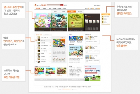 SK커뮤니케이션즈(대표 이주식 www.nate.com)는 싸이월드 앱스토어 페이지를 개편했다고 밝혔다. 우선 이번